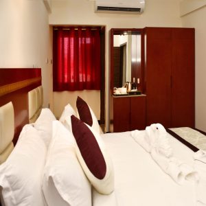 Our deluxe rooms are the perfect blend of understated luxury and convenience. The spacious deluxe rooms feature king size beds, separate seating area, safe lock, Hair dryer, luxury amenities, interactive TV and complimentary hi-speed WiFi.